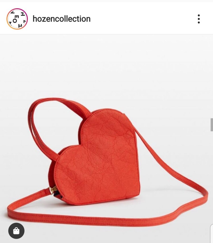 Up first, from the Californian brand Hozen who make sustainable vegan bags, a heart shaped shoulder bag.