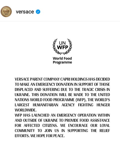 Here are the brands’ instagram feeds showing their support. Donations from the fashion industry are being sent to various organisations, typically, the United Nations World Food Programme and UN Refugee Agency (UNHCR). Check them out for more details.